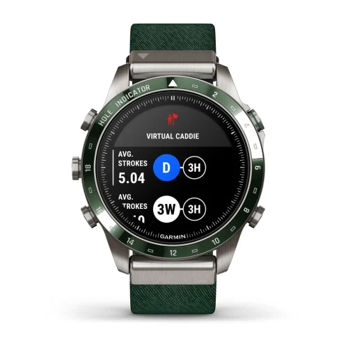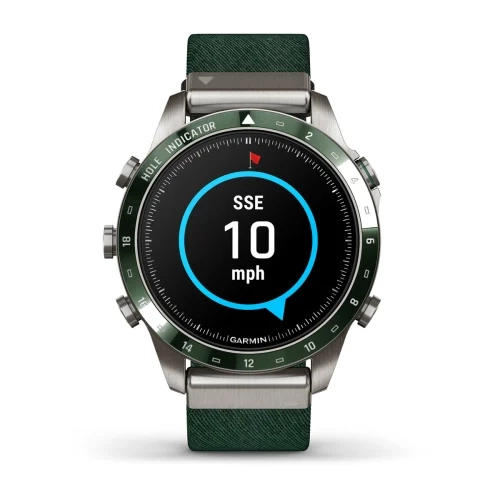 Get caddie help right on your wrist when paired with a compatible smartphone. The virtual caddie feature factors in wind speed and direction and then suggests a club based on the distance you typically swing with that particular club.